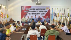 SPEDISIA.com | Makassar, Tim penjaringan dan penyaringan (TPP) calon ketua umum KONI Sulawesi Selatan menerima pengembalian berkas bakal calon ketua umum H. Darmawansyah Muin di sekretarian KONI Sulawesi Selatan, Jl. Hasanuddin Makassar, Senin? 3/11/2025.