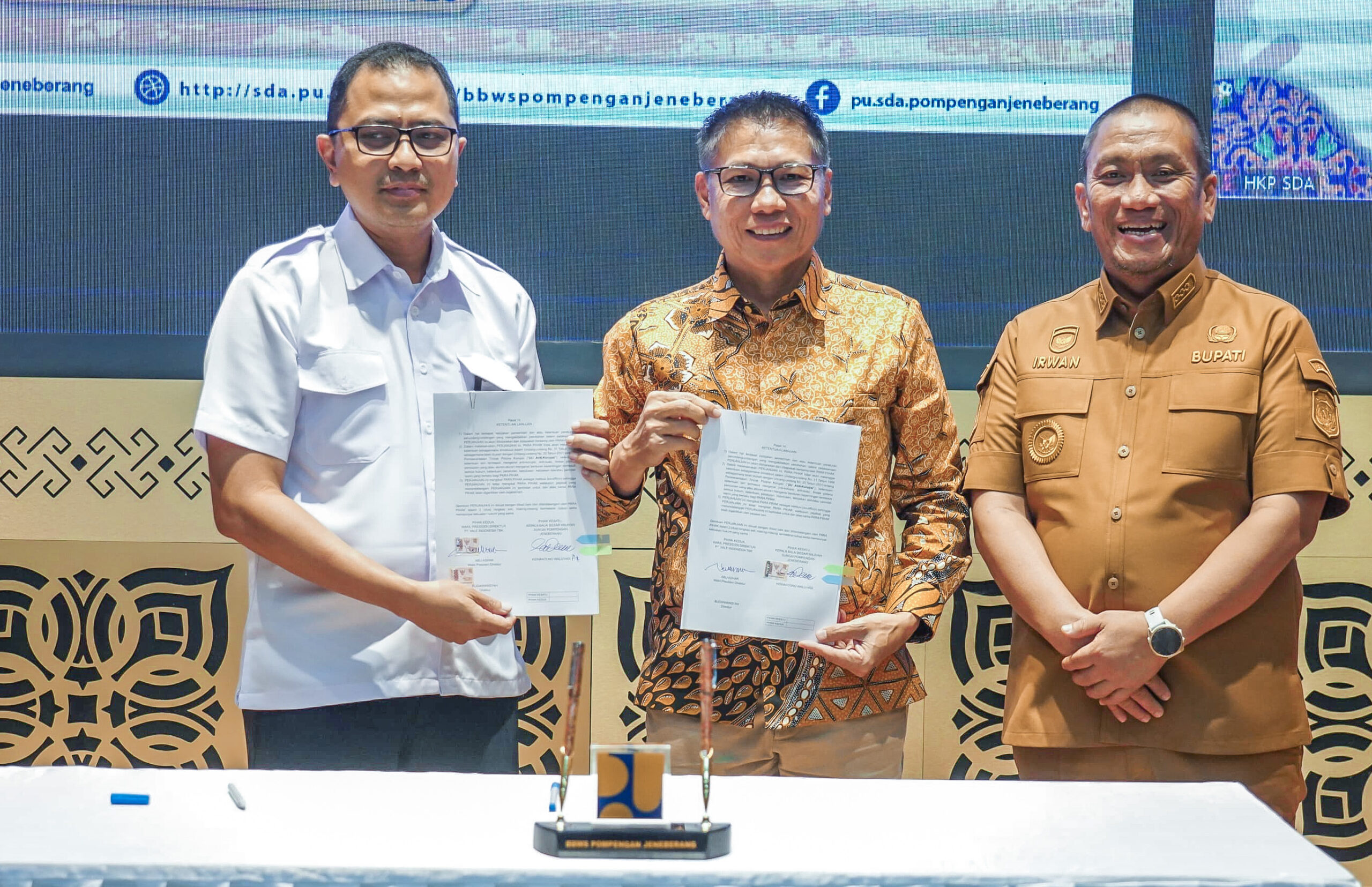 Penandatanganan kerjasama berlangsung di Kantor BBWS Pompengan Jeneberang, Kementerian Pekerjaan Umum dan Perumahan Rakyat (KemenPUPR) oleh Bupati Luwu Timur Irwan Bachri Syam, Kepala BBWS Pompengan Jeneberang Heriantono Waluyadi, serta Wakil Presiden Direktur dan Chief Operation and Infrastructure Officer PT Vale Indonesia, Abu Ashar.