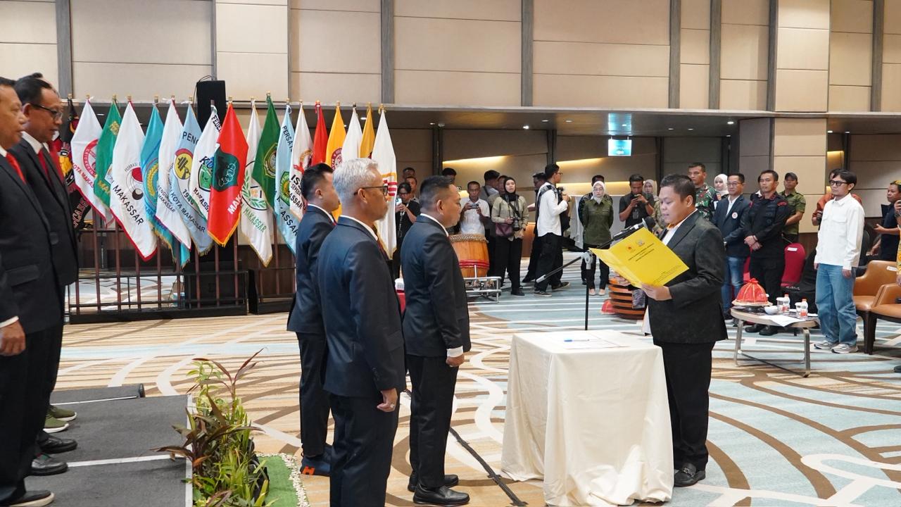 SPEDISIA.com | Makassar — Ketua KONI Sulawesi Selatan, Yasir Machmud, hadir dan secara resmi melantik pengurus Komite Olahraga Nasional Indonesia (KONI) Kota Makassar masa bakti 2025–2029 di Hotel Novotel Makassar, Jumat (24/10/2025).