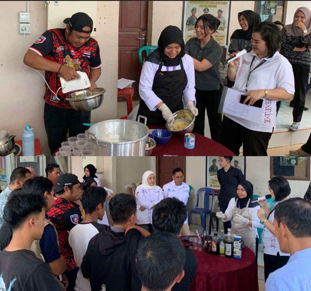 Usai sesi materi, kegiatan dilanjutkan dengan pelatihan praktis pengelolaan makanan dan inovasi kuliner bagi masyarakat yang ingin mengembangkan usaha kuliner lokal. Peserta mengikuti demonstrasi pembuatan Mini Brownies Cheese Melt yang dipandu oleh Tri Elfa Damayanti, Pastry Chef Hotel Aston Makassar. Selain itu, inovasi minuman Cold White Coffee juga diperkenalkan oleh A. Rezkitni Aulia, barista profesional dari Kaffeine Makassar. Antusiasme peserta sangat tinggi; mereka terlibat langsung dalam proses pembuatan dan berinteraksi aktif dengan narasumber. Kegiatan ini diharapkan dapat memberikan inspirasi dalam pengembangan produk kuliner khas yang menjadi daya tarik wisata kuliner di Tompobulu.