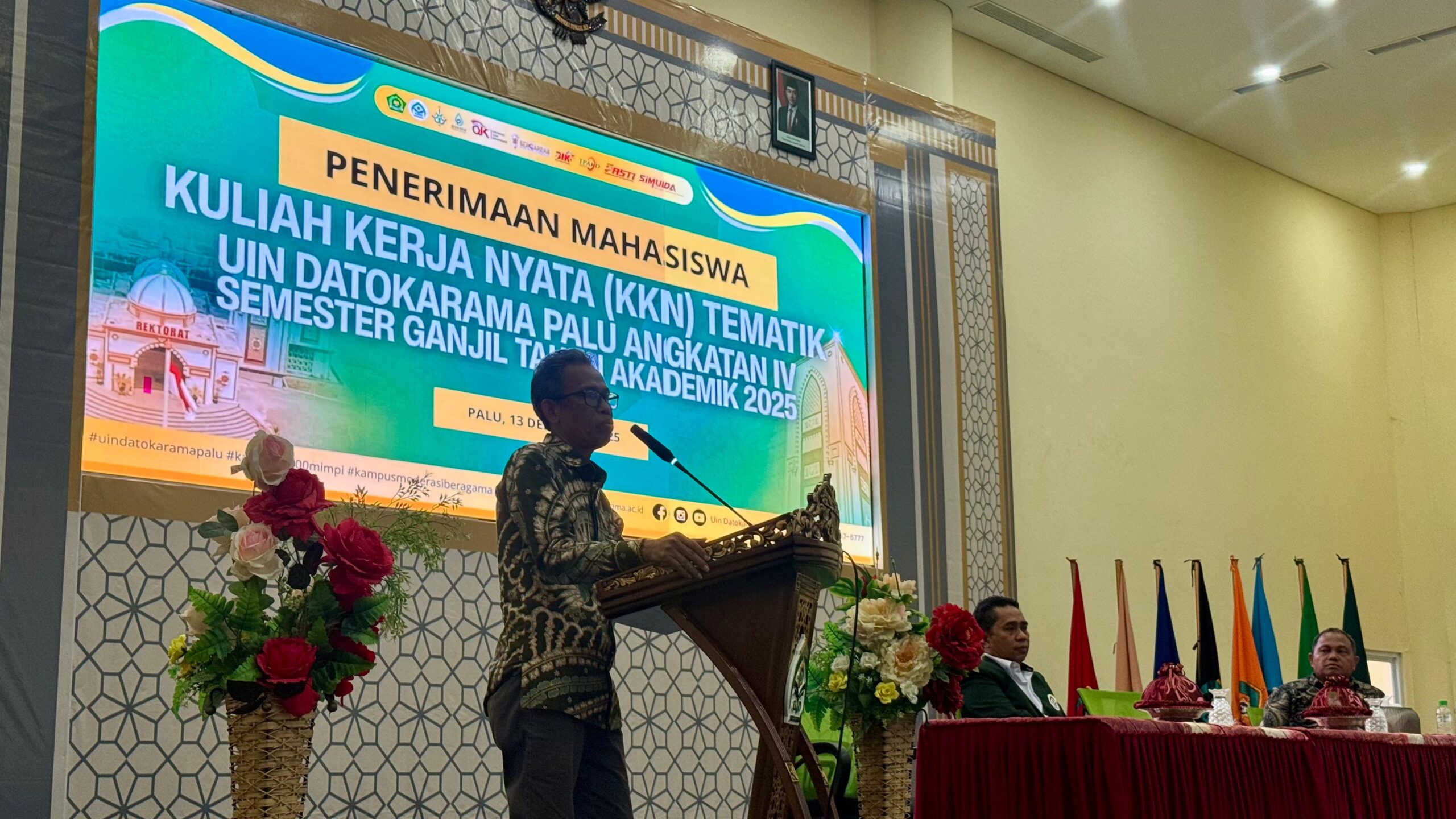 SPEDISIA.com | Palu, Rektor UIN Datokarama Palu Prof. Dr. H. Lukman S. Thahir menerima secara resmi mahasiswa kuliah kerja nyata (KKN) Tematik Angkatan IV Semestet Ganjil Tahun 2025 di Auditorium Kampus UIN Datokarama, Sabtu, 13/12/2025.