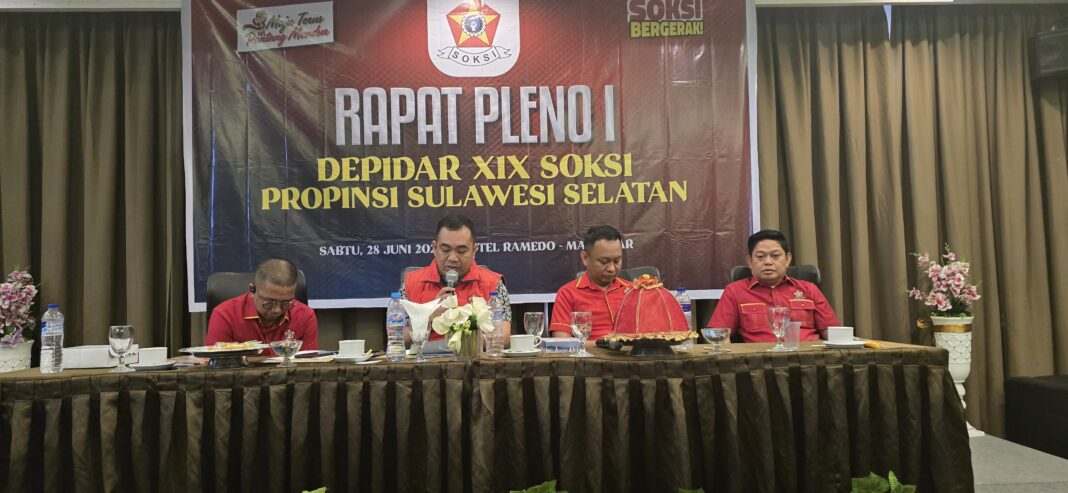 SPEDISIA.com | MAKASSAR – Dewan Pimpinan Daerah (Depidar) Sentral Organisasi Karyawan Swadiri Indonesia (Soksi) Sulawesi Selatan menggelar rapat pleno perdana di Hotel Ramedo, Jl Andi Djemma, Makassar, Sabtu (28/6/2025).