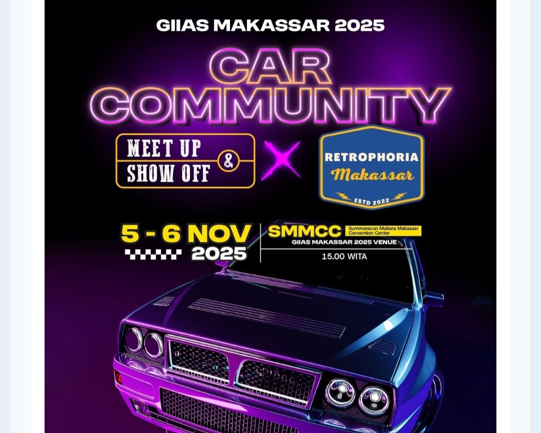 SPEDESIA– MAKASSAR Setelah enam tahun vakum, pameran otomotif GAIKINDO Indonesia International Auto Show (GIIAS) Makassar 2025 siap kembali digelar pada 5–9 November 2025 di Summarecon Mutiara Makassar Convention Center.